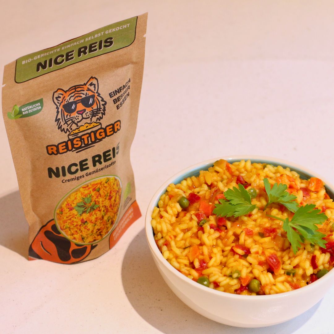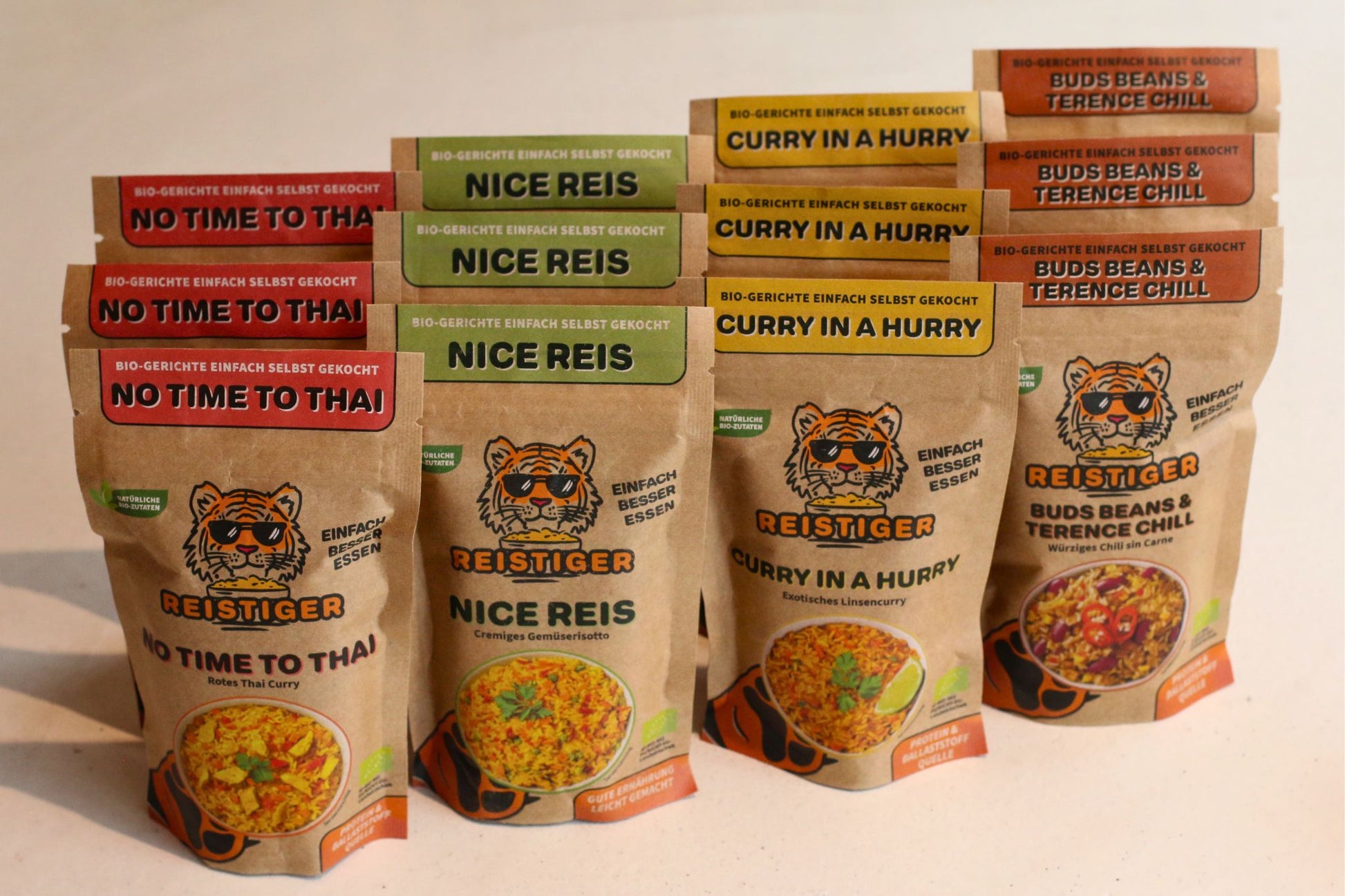 Reistigergerichte sind von Hand abgefüllte Kochmischungen die du mit Wasser zu köstlichen Bio-Reisgerichten kochst. Die Hauptzutaten sind hochwertiger Reis, schonend getrocknetes Bio-Gemüse, gesunde Hülsenfrüchte und handerlesene Bio-Gewürze. Die Packungen sind lange haltbar und benötigen keine Kühlung. Dadurch hast du immer und überall eine nahrhafte und köstliche Reismahlzeit auf Vorrat wenn es schnell gehen muss.